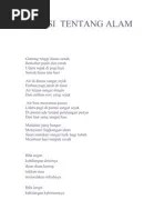 Dikutip portal jember dari berbagai sumber, berikut kumpulan puisi lingkungan hidup dan keindahan alam yang dapat dijadikan referensi untuk . Berikut ini adalah kumpulan contoh puisi tentang alam terbaik yang dapat . Puisi bisa menggambarkan tentang suasana keadaan sekitar atau lingkungan, perasaan senang, sedih, gelisah, marah, bahkan kekecewaan. Keindahan alam indonesia · 4. Berikut ini adalah kumpulan puisi keindahaan alam dan kekayaan alam yang dapat mewakili perasaan anda betapa indahnya alam ini.